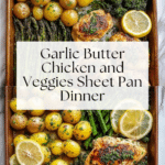 Keywords: sheet pan chicken, garlic butter chicken, roasted vegetables, one pan dinner, easy chicken recipe, healthy dinner, baked chicken and veggies