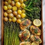 Keywords: sheet pan chicken, garlic butter chicken, roasted vegetables, one pan dinner, easy chicken recipe, healthy dinner, baked chicken and veggies