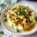 Keywords: slow cooker chicken, chicken and gravy, crockpot chicken, easy chicken dinner, creamy chicken, comfort food, mashed potato topping