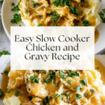 This Slow Cooker Chicken and Gravy recipe is a comforting and easy-to-make dish featuring tender chicken breasts cooked slowly in a creamy chicken soup and gravy mixture. Perfectly served over mashed potatoes and garnished with fresh parsley, it’s a hearty meal ideal for busy days or cozy dinners.