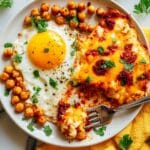 Smoky Chickpea Fried Eggs combine the hearty texture of crispy chickpeas with the rich flavors of smoked paprika and sundried tomatoes. This quick and easy dish makes a satisfying breakfast or brunch with just four simple ingredients.