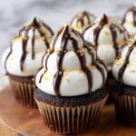 These S’mores Cupcakes combine all the nostalgic flavors of classic campfire s’mores in a moist chocolate cupcake base with a crunchy graham cracker crust and a fluffy meringue frosting. Topped with rich chocolate sauce and extra graham cracker crumbs, these cupcakes are a delightful treat reminiscent of summer nights and cozy gatherings.