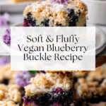 Enjoy this Soft & Fluffy Vegan Blueberry Buckle that is completely egg- and dairy-free! Made with vegan butter, plant-based yogurt, and fresh blueberries, this cake offers a tender crumb and a sweet vanilla crumble topping. Perfect for breakfast, brunch, or a delightful dessert, this recipe yields a moist, flavorful buckle that everyone can enjoy.