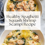 Keywords: spaghetti squash, shrimp scampi, healthy dinner, low carb, roasted squash, seafood skillet, lemon garlic shrimp