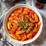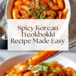 Tteokbokki, also known as Dukbokki, is a beloved Korean street food made from chewy rice cakes simmered in a savory, spicy sauce. This recipe features a flavorful anchovy and kelp broth enriched with gochujang and gochugaru for a perfect balance of heat and umami, complemented by tender fish cakes and a finishing touch of toasted sesame oil and scallions. It’s a comforting, satisfying dish perfect for any occasion.