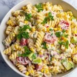 Keywords: Street Corn Pasta Salad, rotini pasta salad, summer salad, corn salad, feta cheese salad, creamy pasta salad, easy pasta recipe