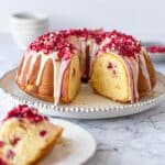 Keywords: white chocolate bundt cake, white chocolate cake, bundt cake recipe, raspberry cake, white chocolate ganache, dessert cake