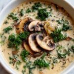 This Wild Mushroom, Caramelized Onion and Kale Soup is a hearty, comforting dish blending earthy mushrooms, sweet caramelized onions, and nutrient-rich kale in a creamy coconut broth. Perfect as a warming meal, it balances robust flavors with a smooth, velvety texture.
